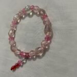 A sparkling handmade bracelet featuring faceted transparent Pink Glass Beads and a cute Red and Pink Dangle Charm. Lightweight and perfect for events or everyday casual wear.